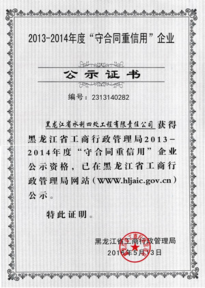 2013-2014年度省級守合同重信用企業(yè)