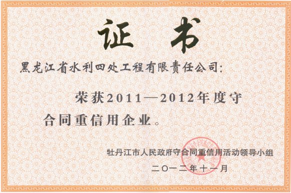 市級2011-2012年守合同重信譽