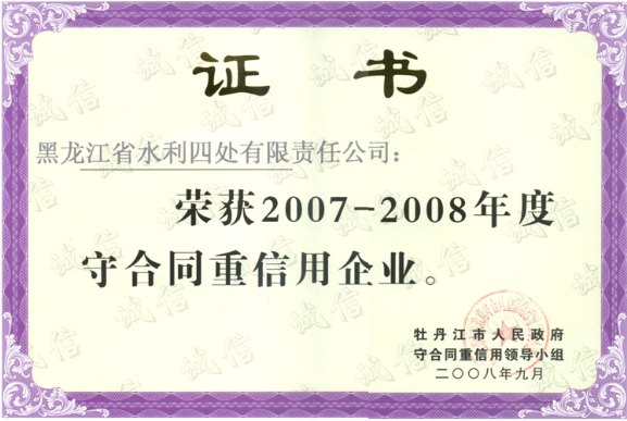 上一篇:2007-2008省級守合同重信用企業(yè)證書